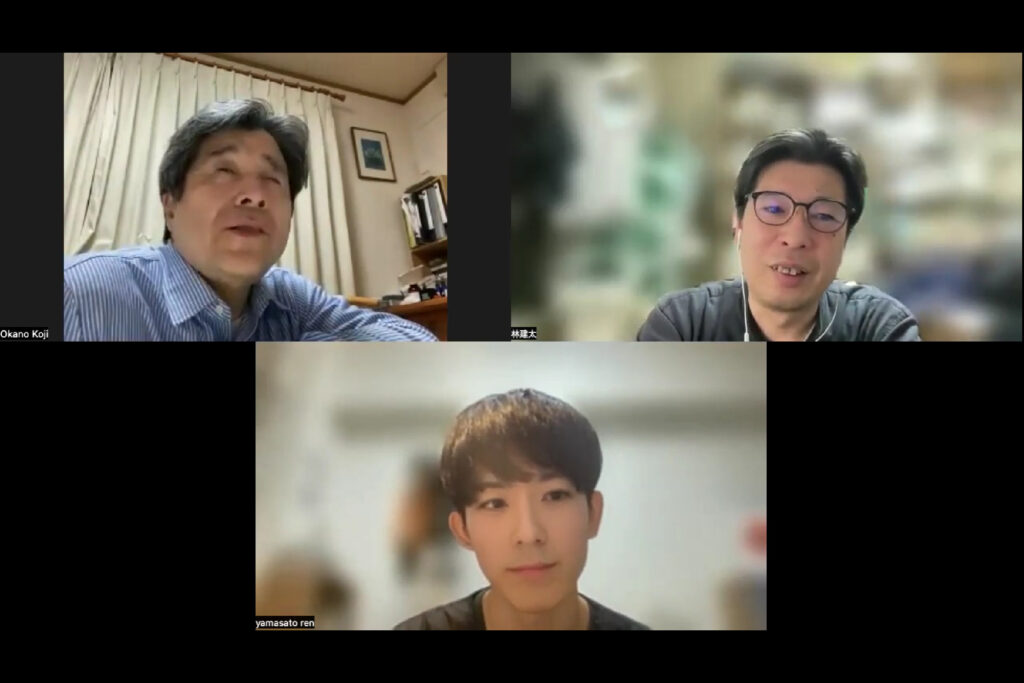 ズームの様子(左上が岡野さん)